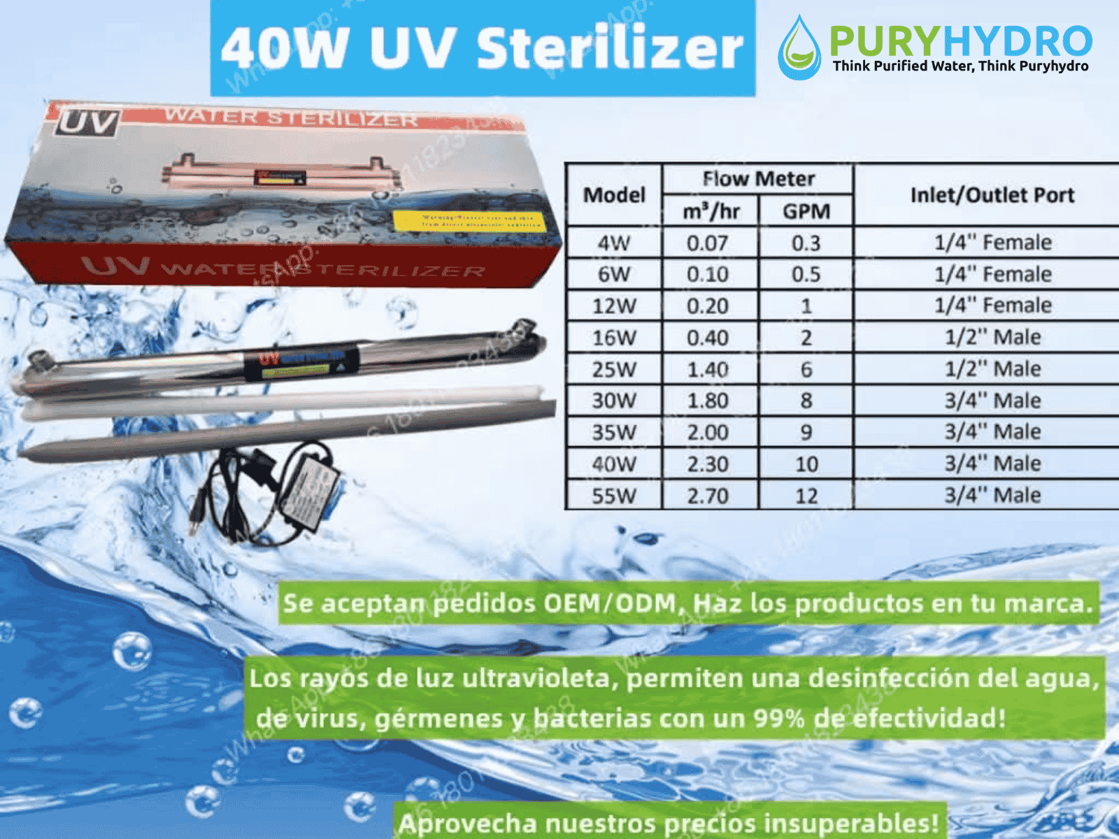 Multiple Capacity Options: Available in various wattages and flow rates to suit different water treatment needs.